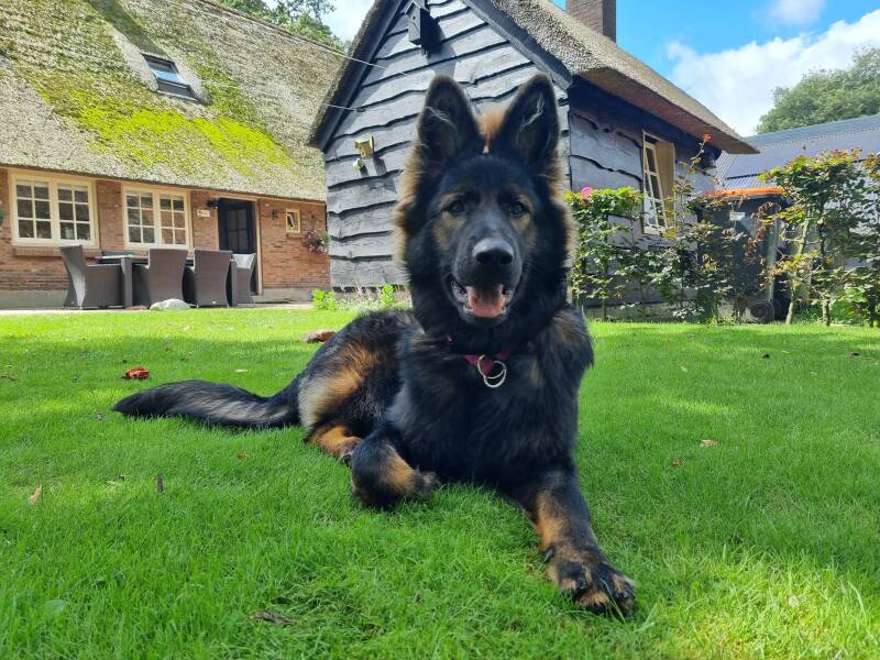 Apple bleef mijn aandacht trekken en tot soms grote frustratie van mijn man bleef ik het maar over haar hebben. "Maar ik vind de kleur niet mooi" zei hij steeds "en ik wil er geen twee!" Na de puptest op 7 weken wist ik het zeker ze moest blijven, wat een fantastisch hondje! En die kleur!!! Ik was om, grauw is helemaal niet lelijk maar kan zelfs héél mooi zijn, zeker zo donker. Ondertussen ben ik er wel achter dat kleur echt niks zegt. Toen we voor de eerste hond gingen (Liv) wilde ik perse zwart maar met beide zwarte teefjes uit het nest had ik niet de klik maar met Liv wel. En nu heb ik dus zelfs een grauwe!